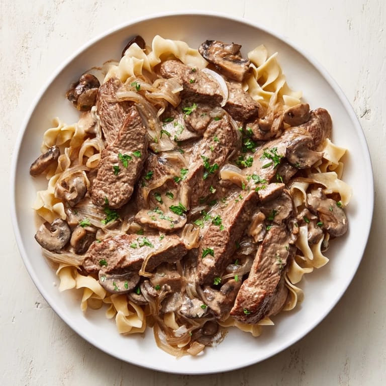 I first tasted beef stroganoff in my childhood kitchen, its aroma filling the house as my mom cooked for our family gatherings. The creamy sauce and hearty beef have made this recipe one of my most cherished comfort meals over the years.