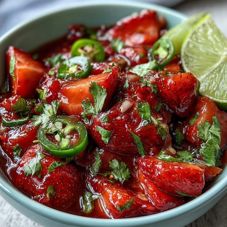 Save My neighbor showed up at a summer dinner party with a mason jar of this strawberry salsa, and I watched people abandon their regular chips and dip entirely. The combination seemed almost wrong at first—fruit and jalapeño together?—but one bite explained everything. It's become the thing I make when I want to impress without stress, bright and alive on the tongue, tasting like someone figured out exactly what summer tastes like.