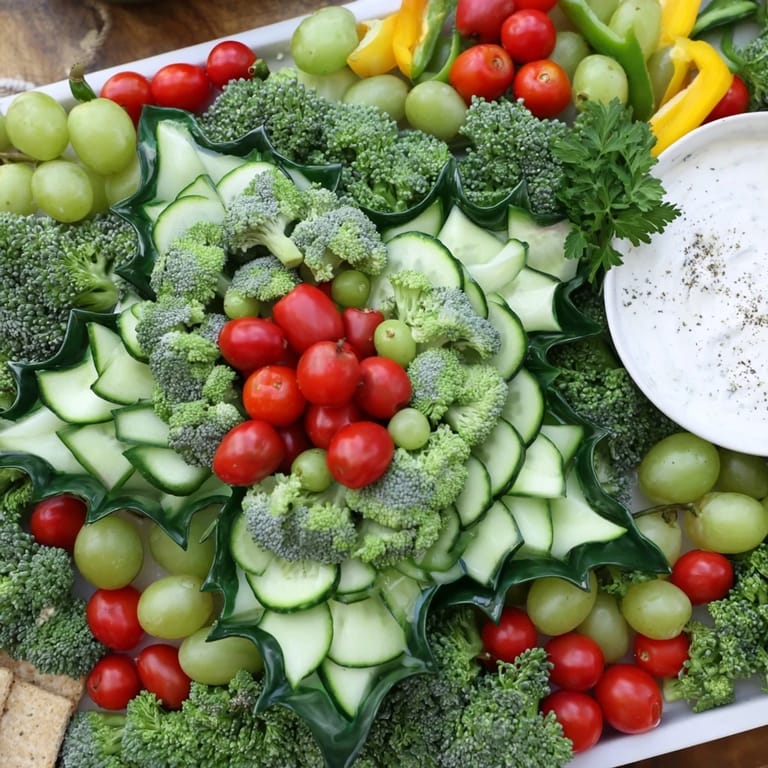 Swap Greek yogurt for a dairy-free alternative to make the dip vegan. Adjust the selection of vegetables based on availability or personal preference while maintaining the green-and-red festive theme.