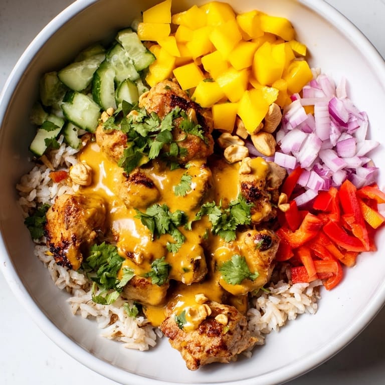 Save This Mango Masala Chicken Tidy Bowl recipe is my go-to for a punchy weeknight meal that feels special but comes together with ease. You get juicy masala-spiced chicken, sweet ripe mango, and a creamy tangy yogurt sauce (all tucked together with cool veggies and fluffy rice). Each bite bursts with freshness and layered spice, making it perfect for meal prep or crowd pleasing dinners.