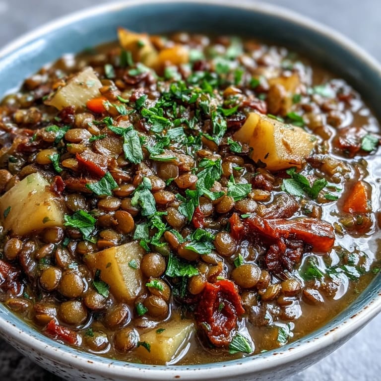 Save There's something about the smell of cumin hitting hot oil that makes me stop whatever I'm doing in the kitchen. Years ago, a friend brought this lentil stew to a potluck on a gray October afternoon, and I watched people circle back for thirds, which almost never happens at these things. What struck me wasn't just how filling it was, but how it tasted better the next day, like it had been thinking about itself overnight and decided to get even better.