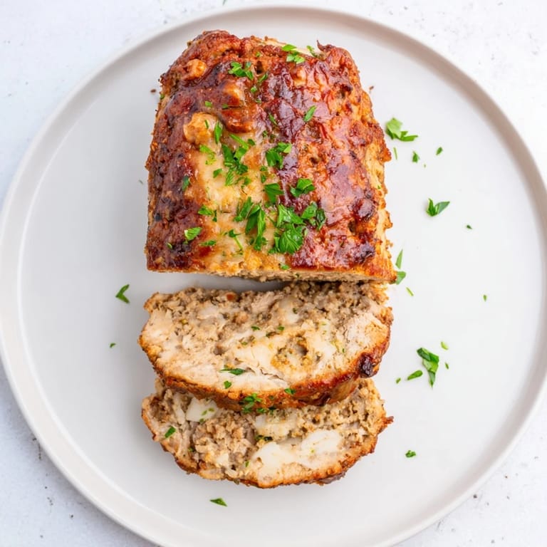 This juicy chicken loaf features a blend of ground chicken, Parmesan cheese, garlic, and herbs, resulting in a tender and flavorful main dish. The garlic-Parmesan glaze adds a rich finish, while baking ensures a moist interior. Perfect for a comforting dinner, it pairs beautifully with roasted veggies or mashed potatoes. Simple preparation and wholesome ingredients make it a satisfying choice for any evening.