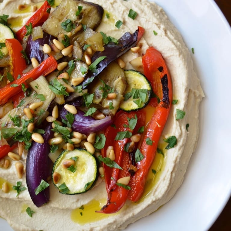 I made this for a small dinner party once, and my friend Sarah arrived early and parked herself on a stool at the kitchen counter. She watched the whole process—the vegetables tumbling in the pan, the blender whirring the chickpeas into clouds of cream—and by the time we plated it with that swoosh of hummus and scattered pine nuts, she was already reaching for a spoon before we'd even sat down. That moment told me everything about why this dish works.