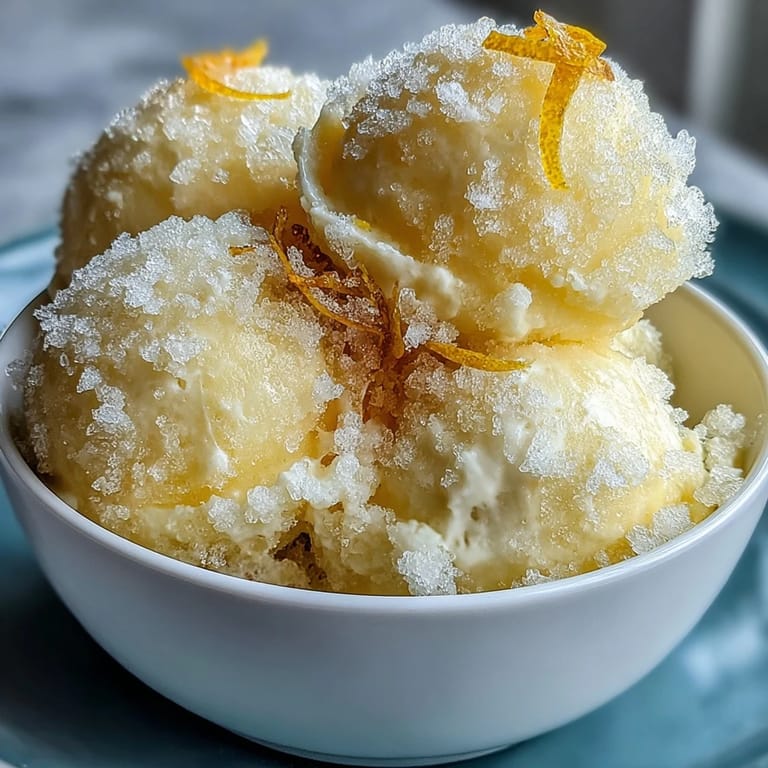 Serve your limoncello sorbet in pre-chilled glasses or elegant dessert bowls for the most authentic Italian experience. Garnish with fresh mint leaves or a twist of lemon zest for added color and fragrance. This sorbet pairs beautifully with almond biscotti for dipping, or serve it between courses as a traditional palate cleanser during multi-course meals. For a sophisticated presentation, scoop the sorbet into hollowed-out lemon halves and freeze until serving time. It's also delightful alongside fresh summer berries or drizzled with a touch of extra limoncello for the adults at the table.