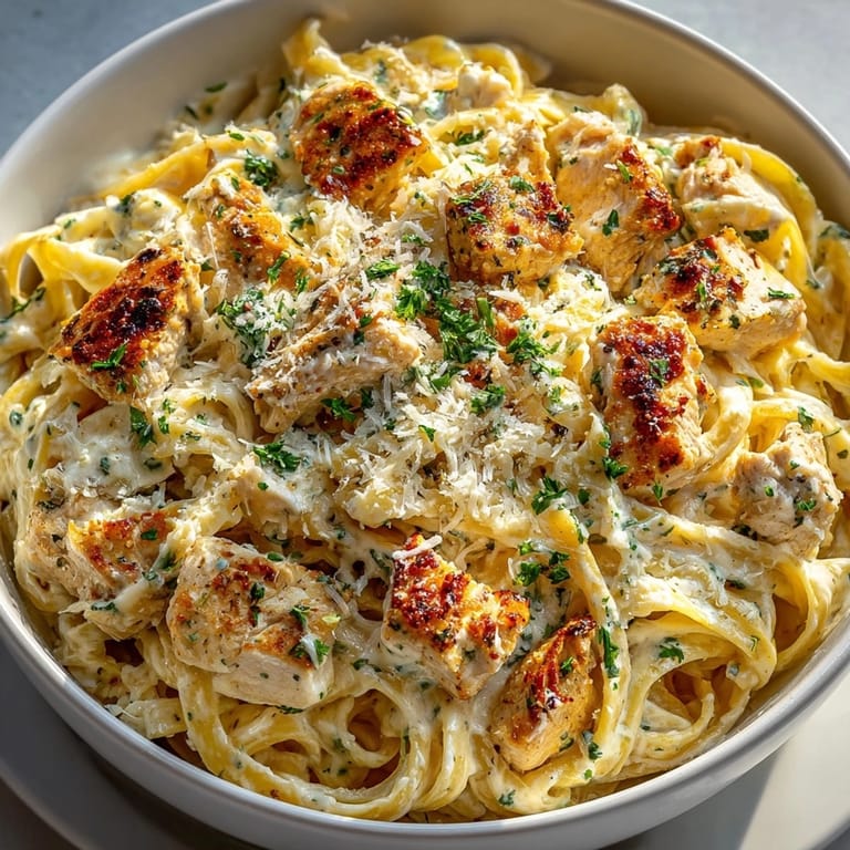 Save This creamy one-pot chicken alfredo pasta has revolutionized my weeknight dinner routine by combining tender chicken, al dente fettuccine, and a rich, garlicky sauce in a single pot. The magic happens when the pasta cooks directly in the savory liquid, absorbing all those incredible flavors while creating its own silky sauce.