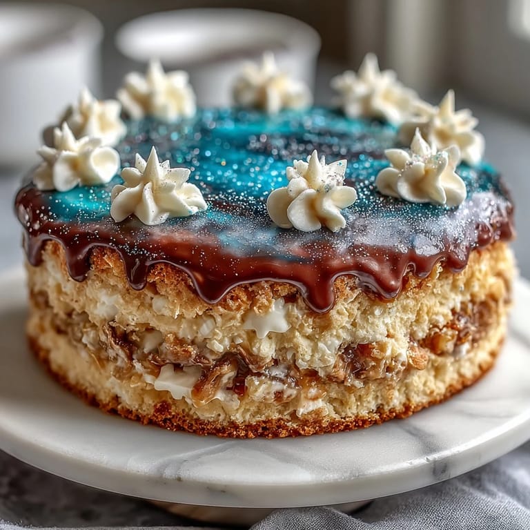 My friend texted me at midnight asking if I could bake something cosmic for her Pisces birthday, and instead of saying no like a sensible person, I found myself scrolling through zodiac cake inspiration at 1 AM. The moment I saw swirls of deep blue and purple bleeding into each other like a watercolor sky, I knew exactly what I wanted to make. This Pisces-themed galaxy cake became my love letter to her—a three-layer vanilla canvas that I'd transform into something that looked like it belonged in a planetarium. The funny part? I'd never worked with edible glitter before, and it ended up everywhere: in my hair, on my black sweater, coating my kitchen like I'd been dusted by a cosmic fairy.