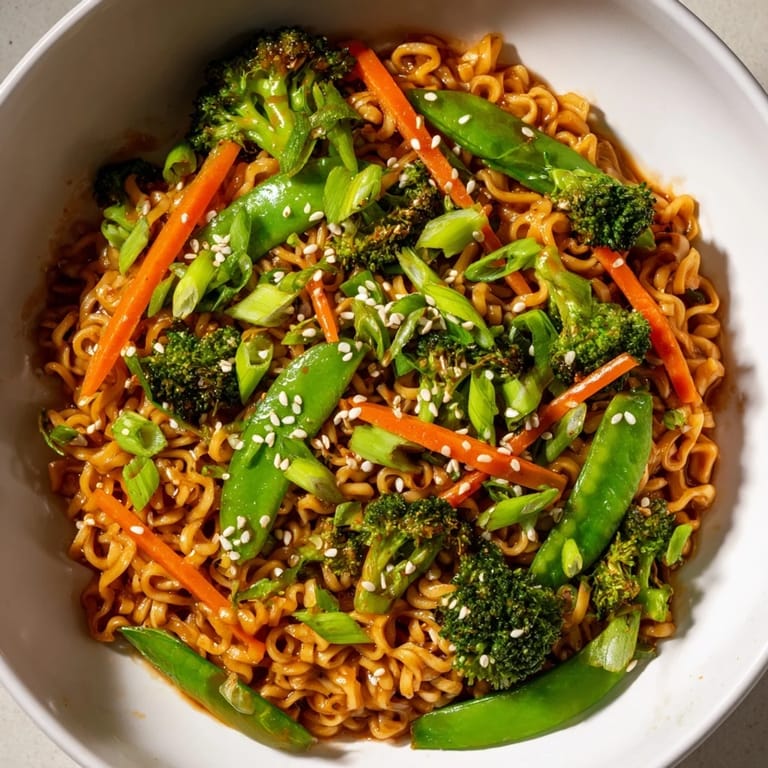 Save A fast and flavorful stir-fry starring instant ramen noodles, frozen vegetables, and a savory homemade sauce. This quick recipe is perfect for busy weeknights and packs plenty of satisfying taste into just 20 minutes.